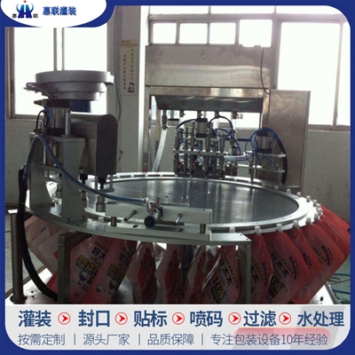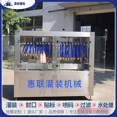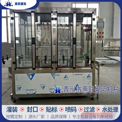 青州市惠聯(lián)灌裝機(jī)械有限公司是一家集生產(chǎn)研發(fā)、銷(xiāo)售、服務(wù)于一體的液體灌裝成套設(shè)備生產(chǎn)企業(yè),可根據(jù)廠家要求設(shè)計(jì)合理液體灌裝生產(chǎn)線,為用戶(hù)提供技術(shù)咨詢(xún)、設(shè)計(jì)工藝、場(chǎng)區(qū)平面布置、工藝改造、設(shè)備安裝調(diào)試等完善服務(wù)。 公司生產(chǎn)制造各種類(lèi)型液體灌裝機(jī)、過(guò)濾機(jī),水處理設(shè)備及液體灌裝成套設(shè)備。主要產(chǎn)品有:白酒、葡萄酒、黃酒等酒水灌裝機(jī)、食用油、機(jī)油、潤(rùn)滑油等油類(lèi)灌裝機(jī)、醬油醋、老抽、生抽等調(diào)味品灌裝機(jī)、防凍液、玻璃水灌裝機(jī)、酒精、84消毒液灌裝機(jī)、車(chē)用尿素灌裝機(jī)、口服液灌裝機(jī)、洗滌劑灌裝機(jī)等多種液體、膏體灌裝設(shè)備,全自動(dòng)/半自動(dòng)灌裝機(jī)型號(hào)多,規(guī)格全,洗瓶機(jī)、瓶子封口機(jī)、打塞機(jī)、熱縮機(jī)、瓶子烘干機(jī)、貼標(biāo)機(jī)、噴碼機(jī)、輸送線、裝箱機(jī)、水處理設(shè)備等全套生產(chǎn)線相關(guān)配套設(shè)備齊全,自產(chǎn)自銷(xiāo),一站式購(gòu)齊,售后無(wú)憂(yōu)。